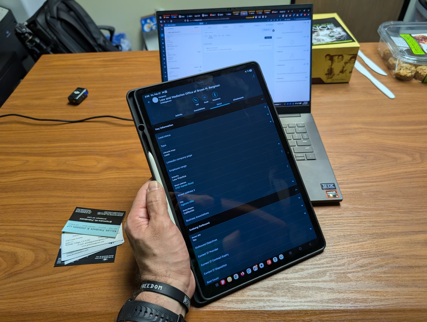Voice-to-Text: Use your CRM mobile app to record a quick note: "Met [GK Name], they use [MSP Name], office has about 20 people, owner is into [Interest]."